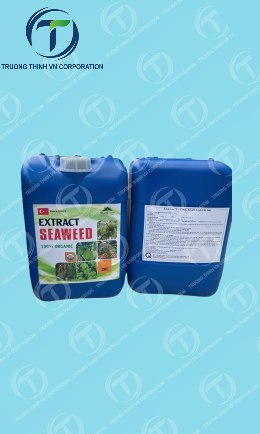 Extract Seaweed CAN 20L (26kg) TƯỚI GỐCThành phần nguyên liệu: Chất hữu cơ: 38%% ; Fulvic Acid: 20% ; Humic Acid: 30% ; N (ts): 5%% ; K2O: 5% ; pH: 5-7 kết hợp Trung Vi lượng tổng hợp và các chất kích thích sinh học.